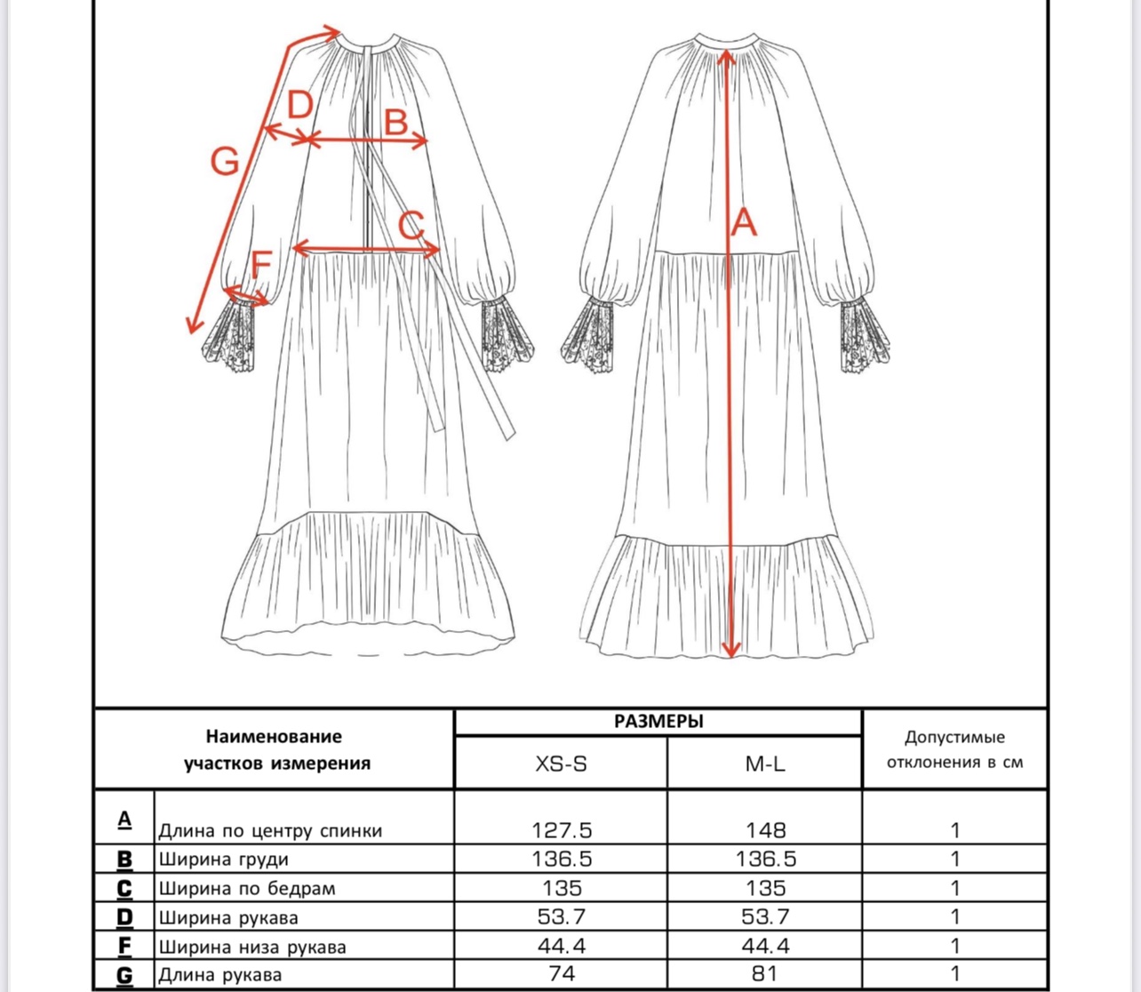 Таблица размеров