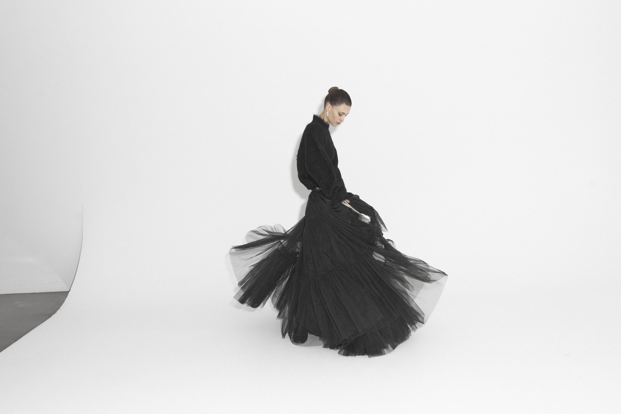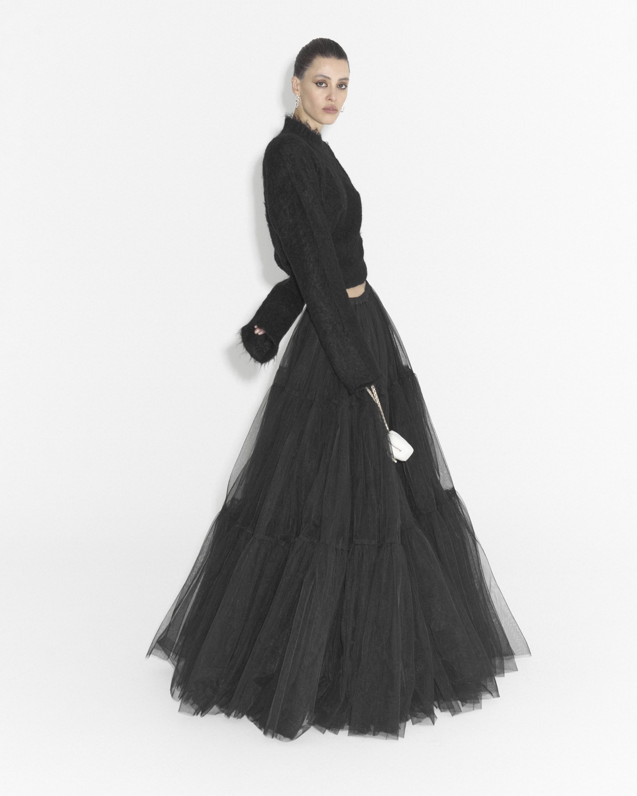 Эффектная юбка макси из высококачественного фатина создана для ваших самых смелых выходов. Модель акцентирует талию и мягко расширяется к низу, создавая плавный и драматичный объем. Благодаря сложной структуре и глубине цвета, изделие становится центральной деталью любого образа — от вечернего, до концептуального. Юбка идеально подойдет для тех, кто стремится подчеркнуть индивидуальность и создать по-настоящему запоминающийся образ. Прекрасно сочетается, как с лаконичными топами, так и с более сложными фактурами, в том числе кожей и объемным трикотажем.