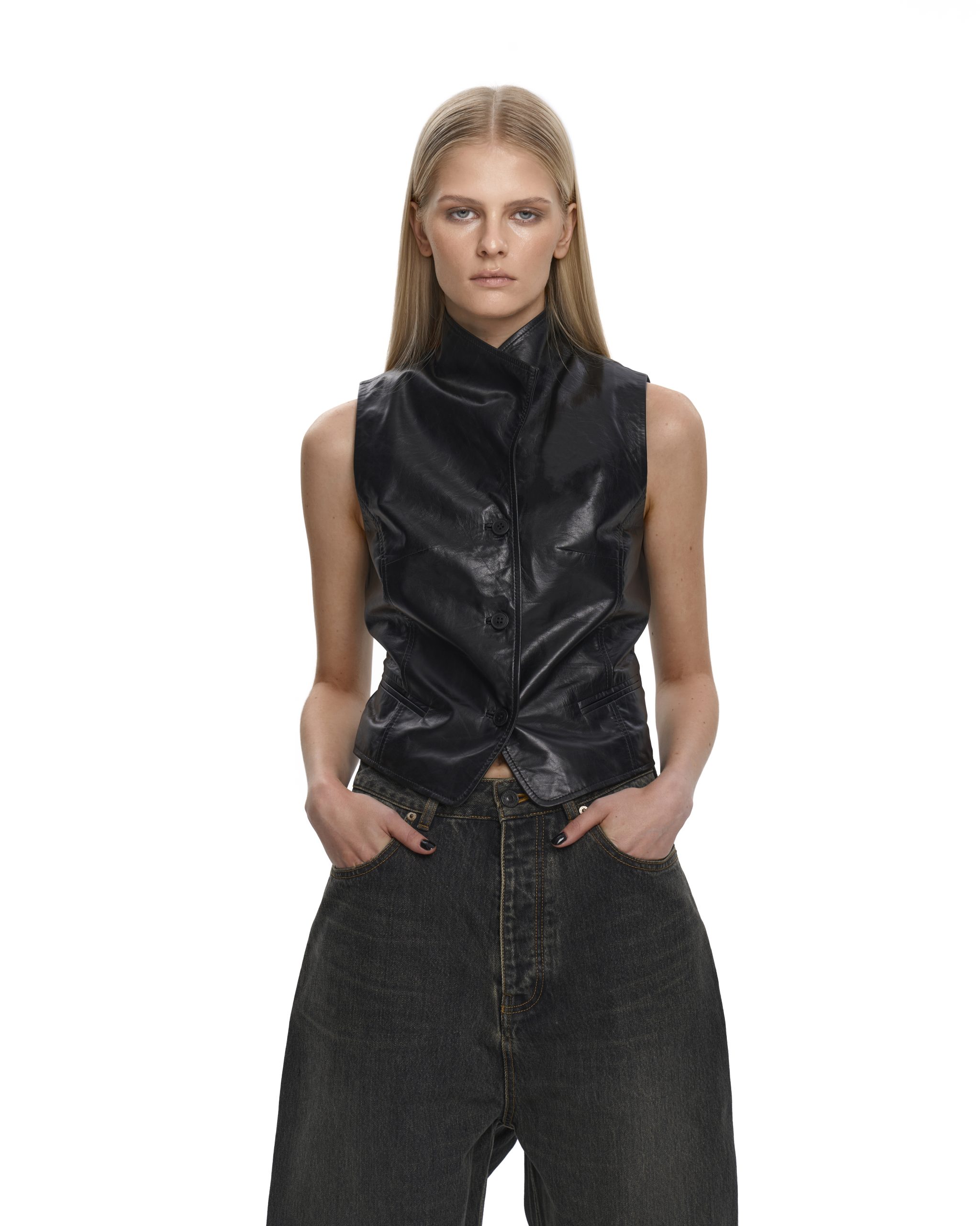 Лаконичный жилет выполнили из мягкой высококачественной кожи ягненка. Приталенный силуэт, чистые линии и аккуратная застежка на брендированных пуговицах, формируют современную архитектурную форму. Модель подчеркивает талию и гармонично сочетается, как с объемными, так и с минималистичными низами, оставаясь ключевым акцентом образа. Создайте яркий, запоминающийся ансамбль в комплекте с ЮБКОЙ SABOTAGE или свободными джинсами.
